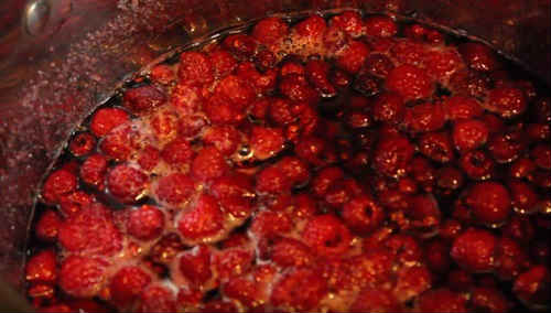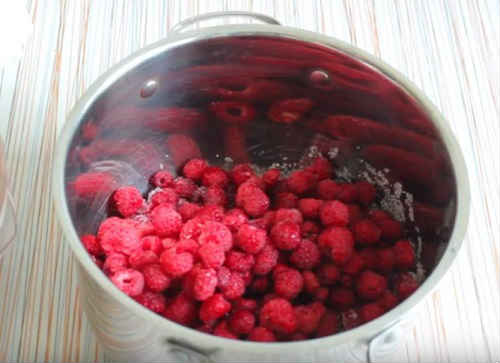 Ще один хороший спосіб зварити варення зберігши малину цілою. Варимо в сиропі, додавши трохи води.