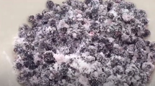 - Засипте в кожну посудину цукор, акуратно розмішайте, щоб не порушити цілісність ягід. Витримайте 10-11 годин (можна залишити на ніч). За цей час ягоди виділять велика кількість соку.