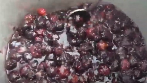 - Влийте в каструлю воду, зігрійте до 80-90 про З, засипте ягоди. Проварити 3 хвилини, не даючи вмісту закипіти (на малому вогні).