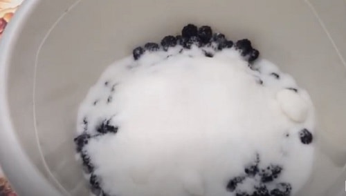 - Відсортуйте ягоди, непридатні для варіння, відірвіть плодоніжки. Складіть в миску, засипте цукром.