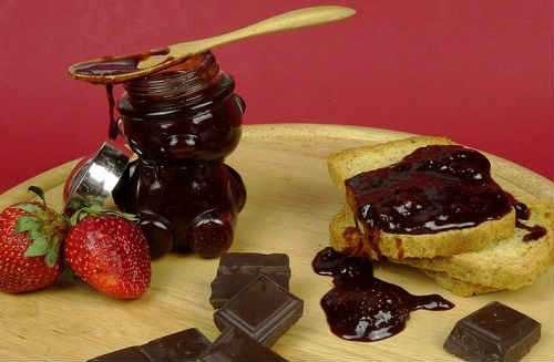 Кажуть, що таким десертом частенько хваляться хазяєчки з Мюнхена. Там вважається особливим шиком дарувати один одному красиві баночки полуниці з шоколадом.