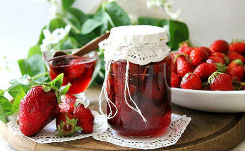 Десерт вариться в кілька прийомів по 5 хвилин, це дає можливість довго зберегти його без бродіння. Полуниця вариться в сиропі, за рахунок чергування нагрівання й остигання, десерт стає густим, але ягідки не розварюються. У класичному рецепті вказана лимонна кислота, ви можете скористатися нею, як консервантом.