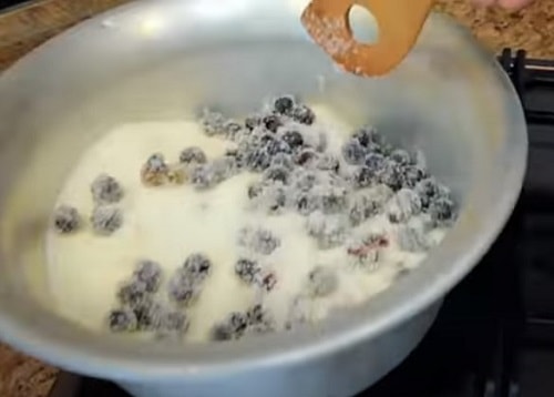 - Коли в сиропі не залишиться кристалів солодощі, перекладіть в каструлю ягідки.