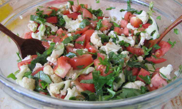 Салат з цвітної капусти і помідорів (калорійність – 53 ккал на 100 г)