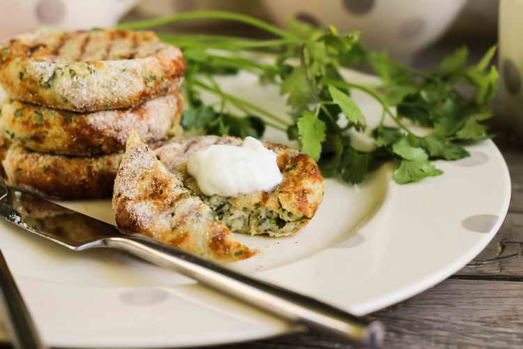 Зелень можете брати будь-яку, не тільки з запропонованої вище. Вимийте зелень, висушіть, дрібно наріжте. Змішайте яйце з цукром, сіллю, приправами, розпушувачем (або содою). Додайте зелень, борошно, замісіть тісто, залиште на 10 хвилин відпочити. Потім сформуйте невеликі коржі, обсмажте з двох сторін, щоб утворився золотистий колір. Містить 173 ккал.