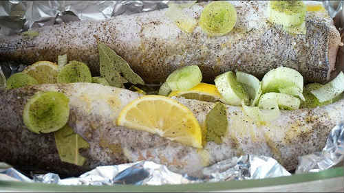 Хек, запечена в духовці з гірчицею, лимоном, часником