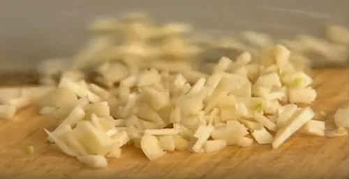 Подрібніть часникові зубчики (можна порубати або розчавити в кашку).