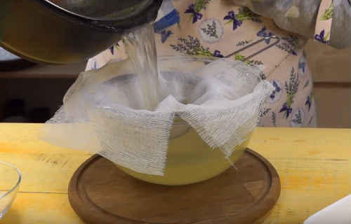 Процідіть бульйон, приберіть лист лаврушки, перець.