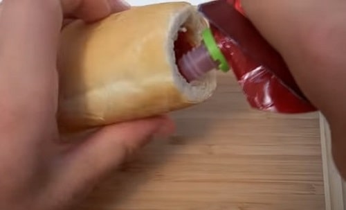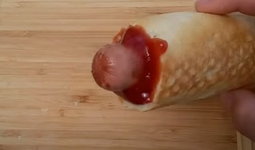 Засуньте сосиску, зверху капніть трохи кетчупу – хот-доги готовий!