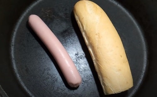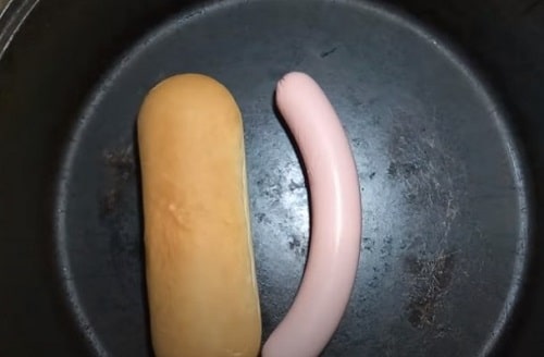 Трохи обсмажте булку з ковбаскою на сковороді без масла.