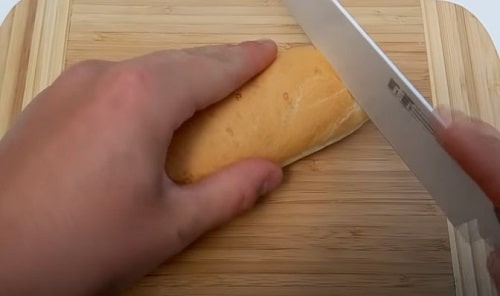 - Надріжте булки з одного боку, не доходячи до кінця.