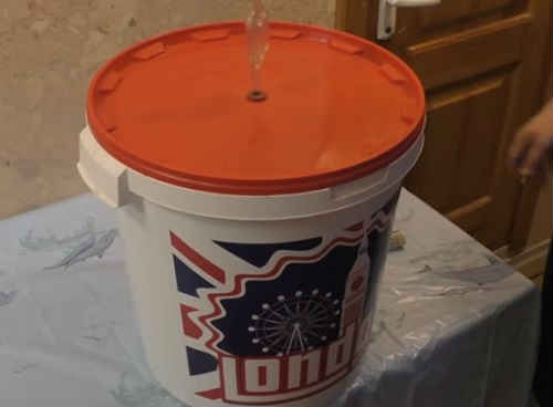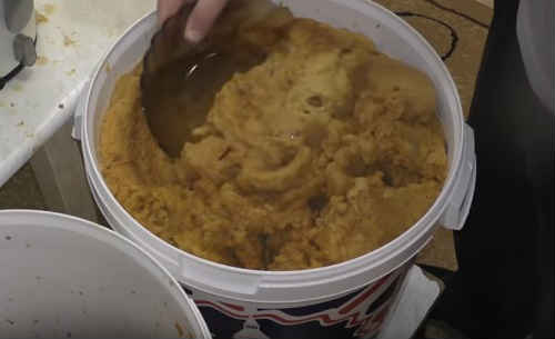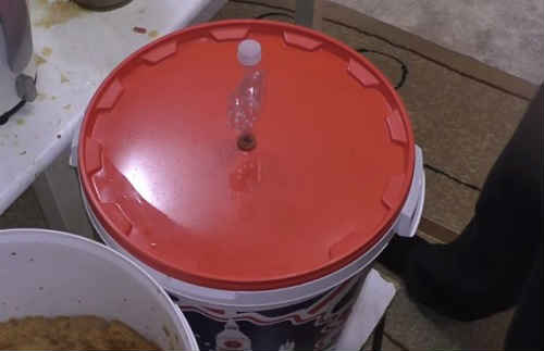 Щільно закрийте відро кришкою, щоб не потрапляло повітря. Встановіть стандартний гідрозатвор, налийте туди воду, закрийте кришечкою. Сховайте ємність в місце, де вона не буде заважати. Температура на початку приготування повинна бути теплою, 20-25 о С, не менше, тобто квартирні умови прекрасно підійдуть.