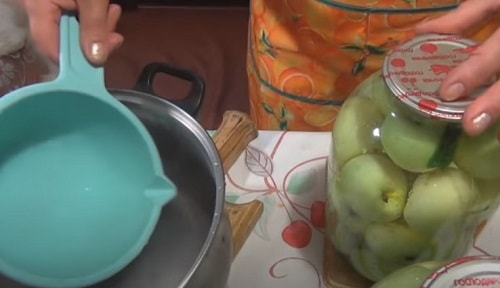 - Влийте сироп в заготовки, відразу закрийте під залізну кришку. Якщо плоди великі, допустимо зробити подвійну заливку.