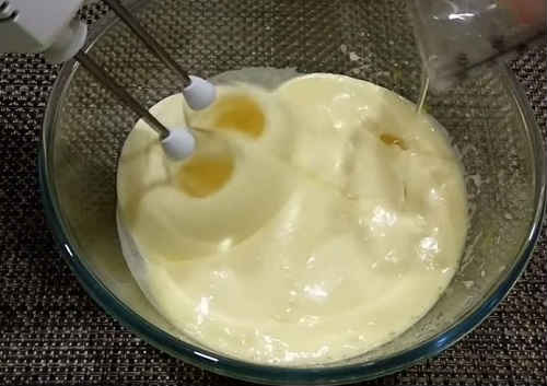 Засипте ваніль, звичайний цукор, підсолити. Збийте міксером до однорідності.