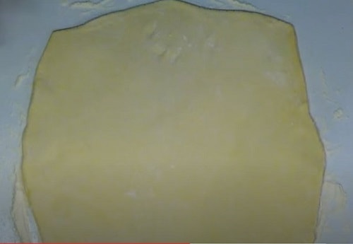 Розправте лист тіста. Якщо вам дісталися квадратні пласти, складені вдвічі, залиште так. Лист, згорнутий рулоном розгорніть і складіть навпіл, а то і в три рази, як на фото.