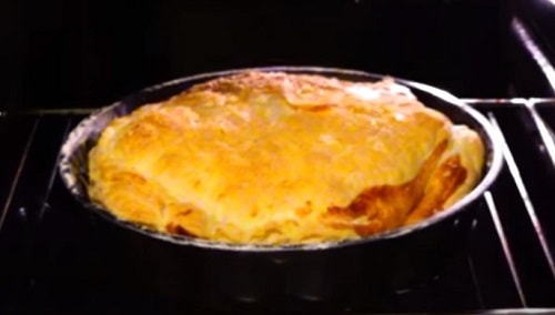 Помістіть пиріг на середній рівень духовки, прогрітій до 180 о С. Увімкніть таймер на 25 хвилин. Час умовне, залежить від величини випічки і потужності вашої печі.