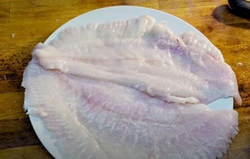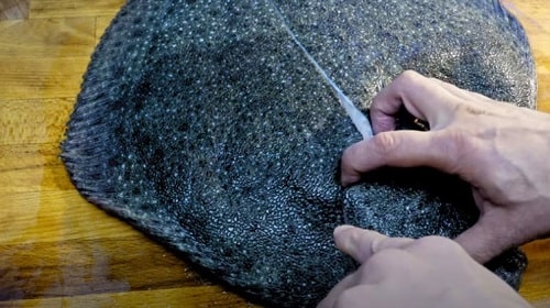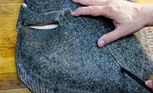 Обполосніть тушку камбали або калкана, який обробляється аналогічно.