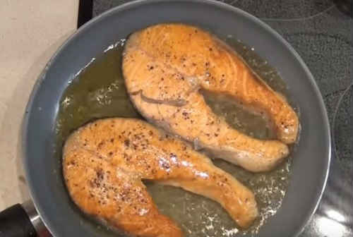 З стейків сьомги можна приготувати королівське блюдо, навіть якщо просто посмажити їх на сковороді. Для приготування використовується звичайна чавунний посуд, або сковорода-гриль з гратчастої поверхнею. Стейки дуже швидко прожариваются, на приготування кожної із сторін йде не більше 5 хвилин.