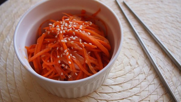 Щоб корейська морквина придбала незвичайний смак, додайте при приготуванні соєвий соус. Ще одна відмінна риса даного рецепту — використання насіння кунжуту. Якщо говорити про моркву, то краще вибирати солодкі сорти. Приготована за цим рецептом блюдо відмінно підійде навіть для святкового столу.
