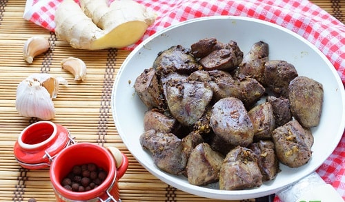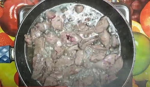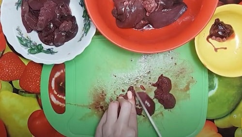 - Обполосніть субпродукт, зріжте зайве, поділіть невеликими брусочками.