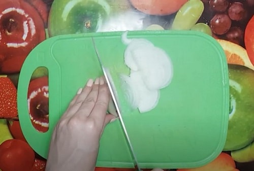 Покришите головки цибулі дрібним кубиком або півкільцями.