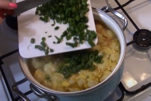 - Після закінчення заданого часу залийте воду або бульйон. Посоліть, дайте закипіти. Варіть на тихому вогні 10 хвилин.