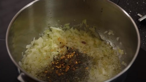 - Заправте овочі спеціями, зазначеними в складі рецепта, киньте гострий перчик чилі.