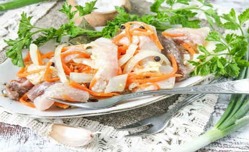 Товстолобик, маринований з цибулею і маслом