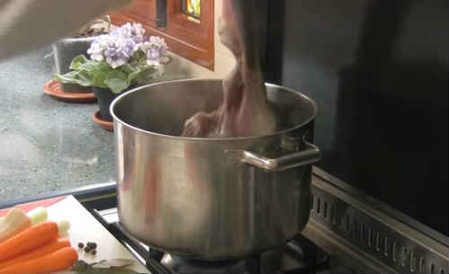 Відваріть продукт в підсоленій воді з додаванням спецій, як це розказано в першому рецепті.