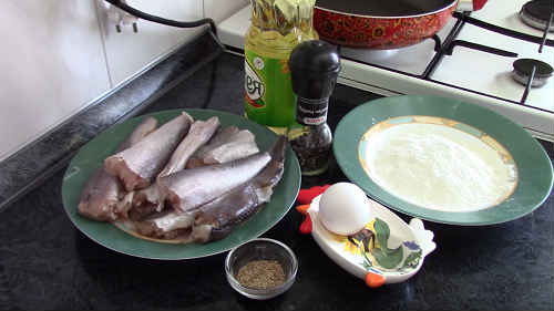 Шматочки риби складіть в яєчну суміш, гарненько умочіть. Займіться іншими справами хвилин на 15, щоб хек промариновался в приправах.