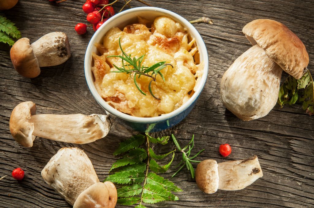 Вишукане поєднання білих грибочків зі сметанним соусом з додаванням мускатного горіха наповнюємо прийом їжі особливим ароматом.