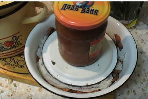 Налийте в каструлю воду, дочекайтеся майже закипання, складіть грибні заготовки. Температура води в каструлі має бути приблизно 90 о С, не давайте їй закипіти.