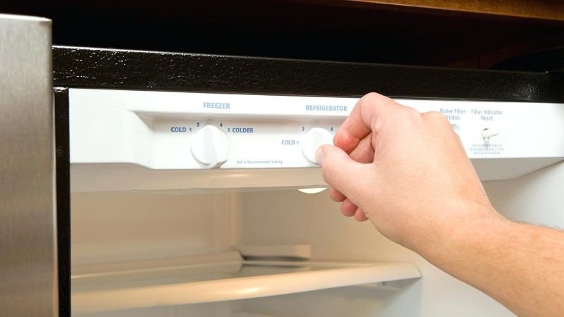 Щоб налаштувати оптимальну температуру в холодильнику, її вимірюють за допомогою термометра. Якщо спеціального або вбудованого приладу немає, використовують термометр, яким заміряють температуру рідини для купання дітей. Його поміщають у склянку з водою і ставлять на середню полицю камери на ніч. Потім перевіряють свідчення. Якщо вони вище +4°С, регулювальну ручку повертають у бік охолодження. Якщо нижче +2°С, температуру підвищують.
