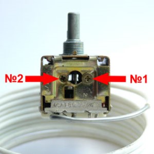 Розберемося, як налаштувати терморегулятор холодильника. На корпусі пристрою є два регулювальних гвинти.