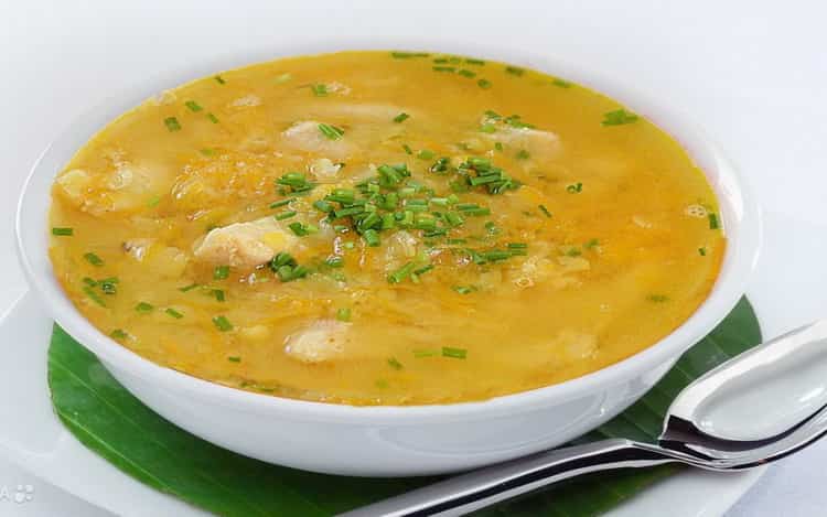 Суп на курячому бульйоні готується з філе або філе, шкіра знімається, овочі використовуються такі ж, як в овочевому бульйоні. Горох обов’язково потрібно замочувати на ніч, після цього він не тільки швидше розварюється, але й стає більш засвоюваним продуктом.