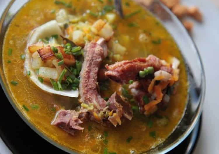 Гороховий суп з копченими реберцями