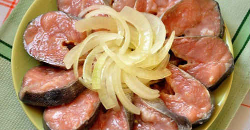 Ще один простий варіант швидкої засолювання риби, який вважають рибалки. Вони роблять це в тузлуці – насиченому соляному розсолі. Беріть стейки, вони будуть дуже швидко готові, але швидкість збільшиться, якщо обробити горбушу на філе.