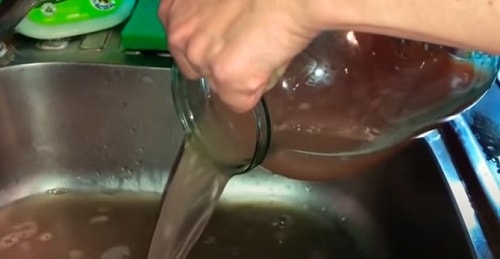 Злийте більшу кількість рідини з банки разом з усім зайвим. Зерна залишаться на дні. Повторіть процедуру, знову залив під напором воду в банку. Знову попрацюйте віночком, намотавши залишки плівки. Дочекайтеся, коли зерна осядуть, і злийте основна кількість води.
