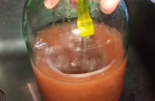 Візьміть звичайний віночок, яким користуєтеся для збивання. Опустіть у банку, протягом пари хвилин інтенсивно разбалтывайте вміст. Не бійтеся, ікринки не раздавятся, у форелі вони досить щільні.