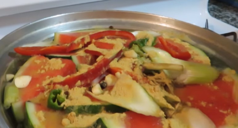 5. Коли плоди на тарілці закінчаться, на заготівлю висипаємо залишилися овочі і запашний перець.