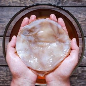 Рада. Перед тим, як відправити медузоміцет на зберігання, його заливають свіжим розчином з невеликою кількістю цукру.