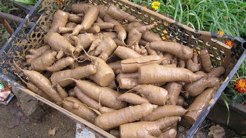 У коренеплодів видаляють гичку і сушать 2-3 дні. На дні ящика укладають плівку з отворами для повітря. Пісок засипають на 2-3 см, коренеплоди викладають, щоб вони не торкалися один одного. Зверху засипають 10 см піску.