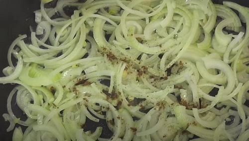 - Приправте коріандром, паприкою, мускатом, посоліть. Продовжуйте тушкувати страву приблизно 3 хвилинки.