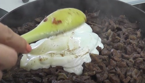 - Тушкуйте бефстроганов 5-7 хвилин на тихому вогні.