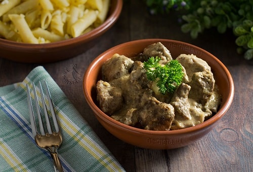 Практично, це класичний рецепт приготування бефстроганова. Ми його готували, тільки зі свинини – запрошую. Технологія однакова для обох видів м’яса.