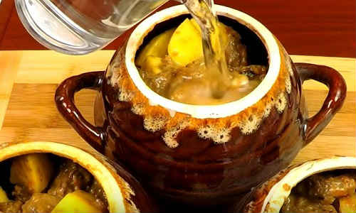 Старовинне російське блюдо, в якому яловичина, томлена в горщиках, стає дуже м’якою і соковитою.