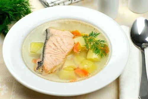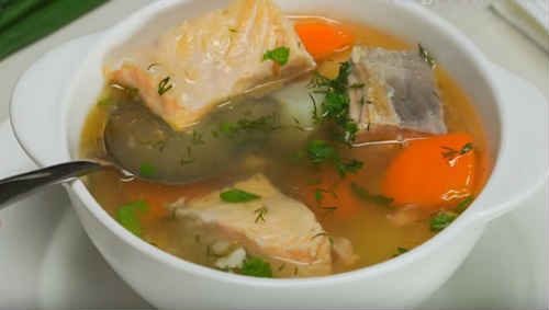 Ситне і смачне перше блюдо з черевець і хребта сьомги. Суп вийде легким, швидко засвоїться, що актуально після низки святкових застіль.