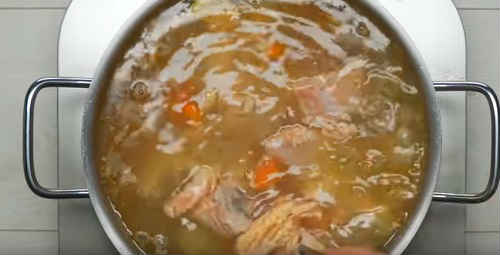 Щоб блюдо вийшло більш ситним, в рибні супи частенько додають пшоно або рис. Готується з хвостової частини, голови і черевця рибини.