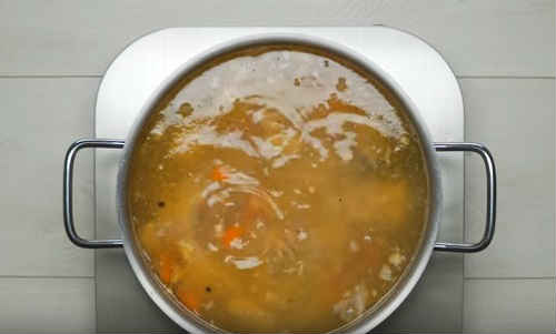 - Дістаньте з бульйону цибулину, підсолити блюдо, здобріть меленим перцем. Дайте бурхливо закипіти і зніміть з плити.