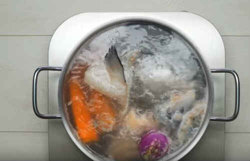 - Перед початком приготування обов’язково видаліть з голови зябра і очі. Тоді бульйон не буде гірчити. Досвідчені господині радять вимочувати голови з півгодини, тоді бульйон гарантовано стане прозорим, а піни буде менше.
